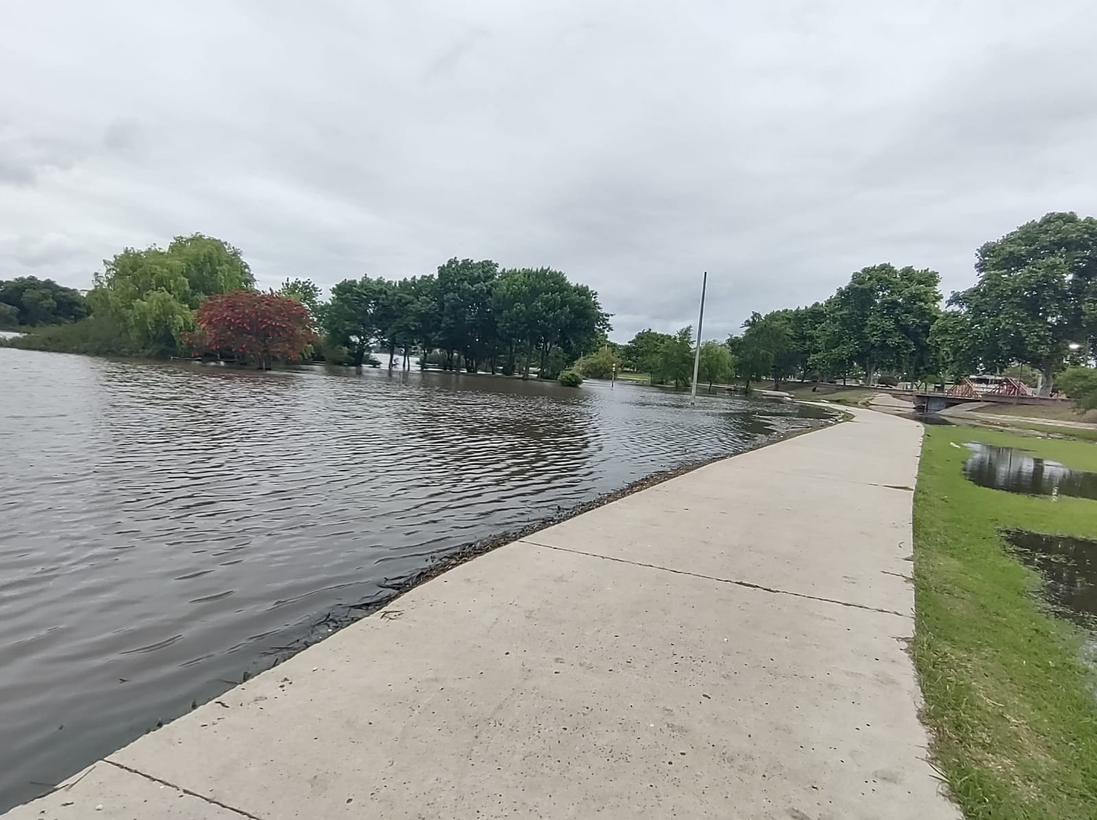 La situación no ha generado cortes de circulación ni problemas generalizados, los vecinos que residen en la zona más profunda del camino de la costa (en una especie de "olla" natural) están en una altura que podrían experimentar dificultades a raíz del ascenso del agua.