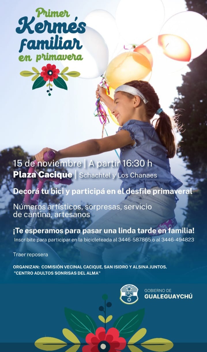 El tradicional Desfile Primaveral de los Niños, una celebración que busca recuperar el espíritu familiar y comunitario, se transforma en una "Primer Kermés Familiar en Primavera" este sábado 15 de noviembre a partir de las 16:30 hs en la Plaza Cacique de Gualeguaychú.